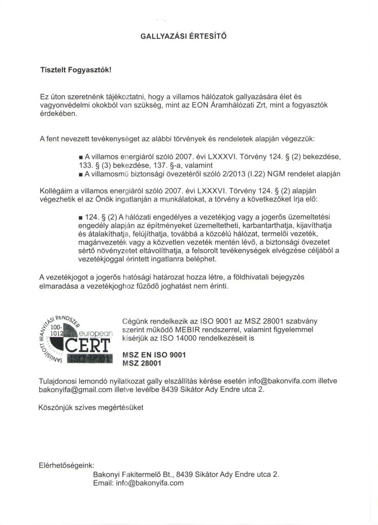 / Gallyazási értesítő